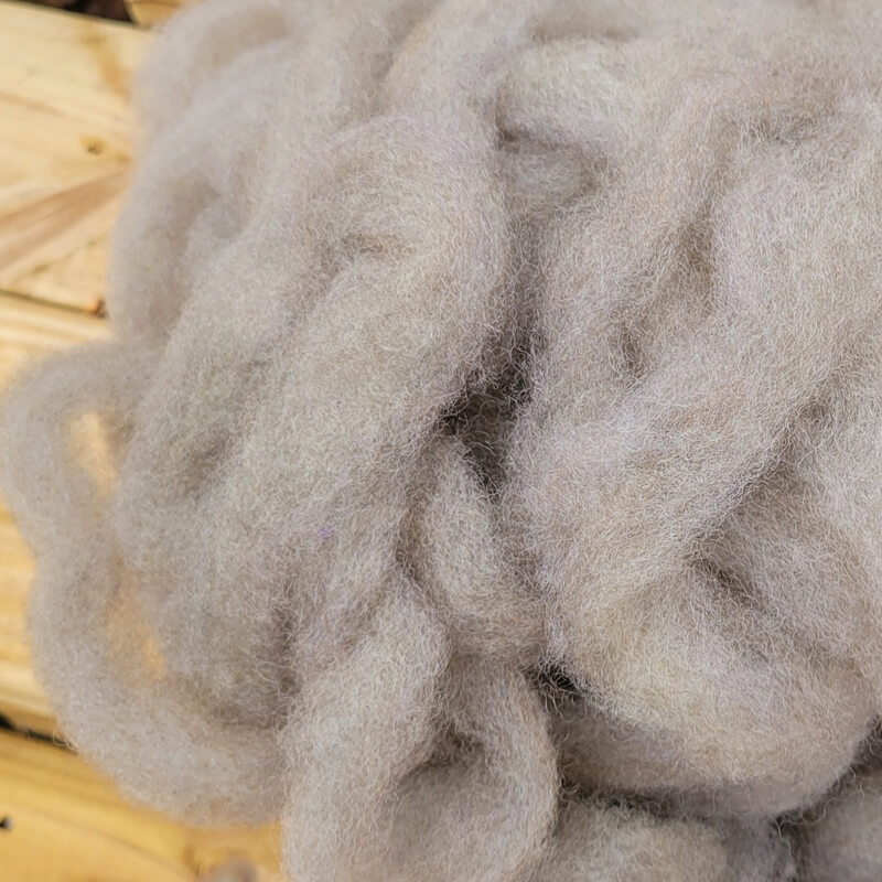 This roving is made from our own flock of heritage Gulf Coast Native sheep. This breed is on the Livestock Conservation list and is valued for its resilience and diverse qualities. The fiber is classified as medium grade, though we find our flock tends to range on the fine-to-medium side, with the natural browns showing slightly more of the rustic characteristics Gulf Coast sheep are prized for.