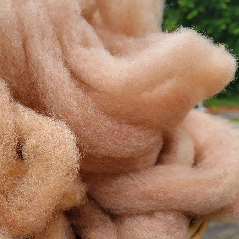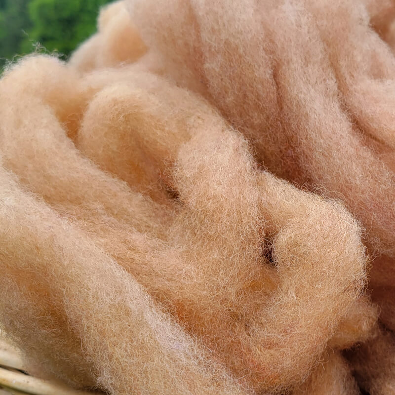 Gulf Coast Native roving – small-batch, hand-shorn, scoured and naturally dyed on-farm with our farm grown botanicals before final milling locally.