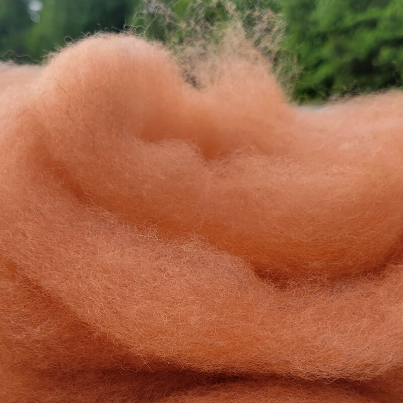 This roving is made from our own flock of heritage Gulf Coast sheep, then hand-selected in small, seasonal batches by our farmers and students. We naturally dye it here on the farm using our own farm-grown dye stuffs, and send it to a local Georgia mill for final de‑vegging and carding. The result is a clean, workable roving with the natural character of Gulf Coast wool—well suited for spinning, blending, and felting.
